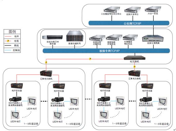 系統(tǒng)通過視頻采集設(shè)備對道路交通事件實(shí)時監(jiān)控并上傳至中心服務(wù)器,監(jiān)控中心的智能視頻處理軟件準(zhǔn)確的分析出交通流量、占有率、排隊(duì)長度、車頭時距、速度等交通基礎(chǔ)數(shù)據(jù)及各種違法行為,通過各業(yè)務(wù)邏輯處理單元實(shí)現(xiàn)各類交通管理業(yè)務(wù)的處理并提供各類外部數(shù)據(jù)接口。交通仿真平臺對各路段緩行、擁堵、排隊(duì)長度等交通事件進(jìn)行仿真分析,制定出對應(yīng)的交通策略,適時調(diào)整控制交通信號燈的信號配時實(shí)現(xiàn)區(qū)域聯(lián)動,有效疏導(dǎo)緩解交通擁堵,也可為交通指揮中心提供輔助決策。