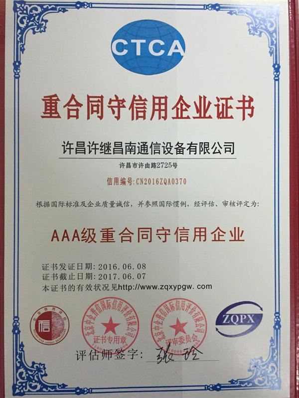 近日,我公司獲評 “企業(yè)信用評價AAA級信用企業(yè)”、“重合同守信用企業(yè)”,這是公司關(guān)于重量級誠信評價的榮譽(yù)。誠信是企業(yè)的立身之本,許昌許繼昌南通信設(shè)備有限公司自成立以來,始終堅持誠信為本的經(jīng)營原則,不斷加強(qiáng)和完善質(zhì)量監(jiān)控體系及安全生產(chǎn)管理,以優(yōu)異的產(chǎn)品質(zhì)量得到了廣大客戶的一致好評,無論是市場競爭力、產(chǎn)品認(rèn)可度還是企業(yè)知名度都在不斷提升。多年來公司始終堅持打造誠信發(fā)展平臺,不斷開創(chuàng)誠信經(jīng)營新局面,為營造誠實(shí)守信、公平競爭的市場環(huán)境做出積極貢獻(xiàn)。