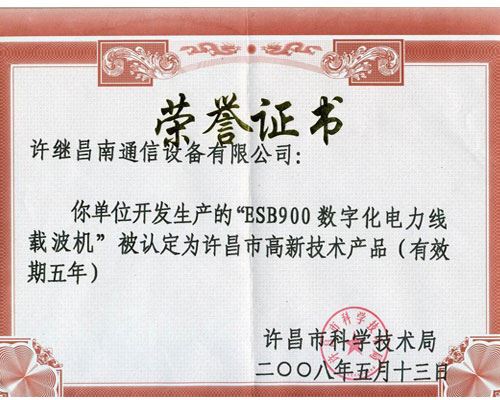 ESB900高新技術(shù)榮譽證書